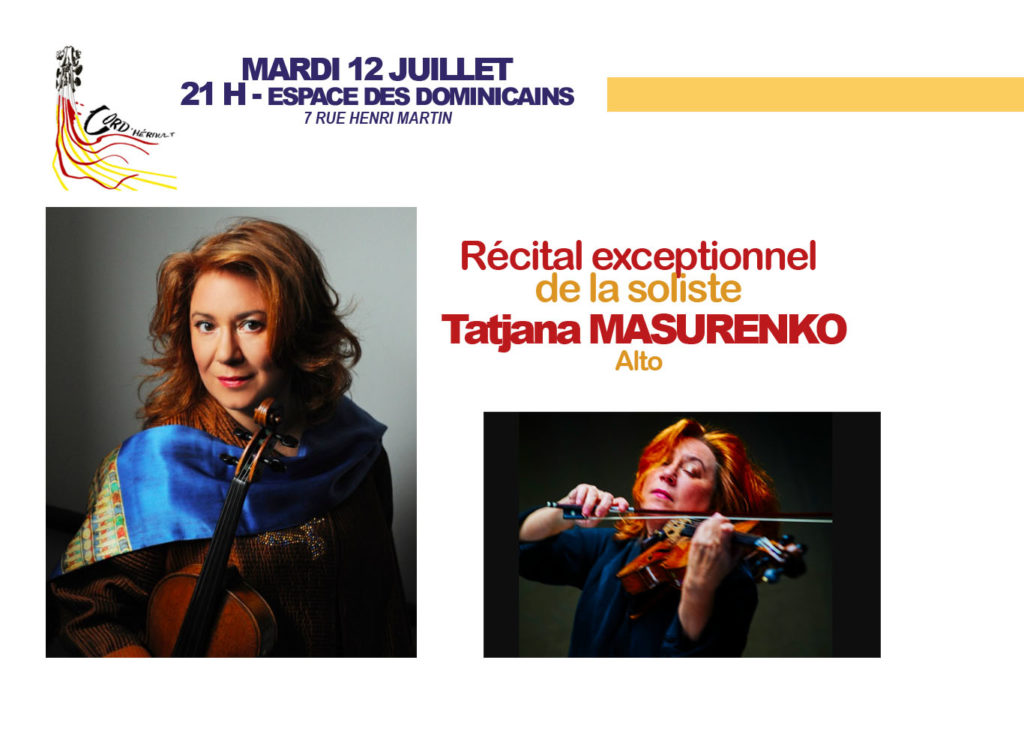 Tatjana Masurenko joue sur un alto de P. Testore, Milan, 1756 et sur un instrument construit spécialement pour elle par Jürgen Manthey, Leipzig 2017. Tatjana Masurenko joue également sur une viole d’amour de Charles Jacquot, Paris 1849.